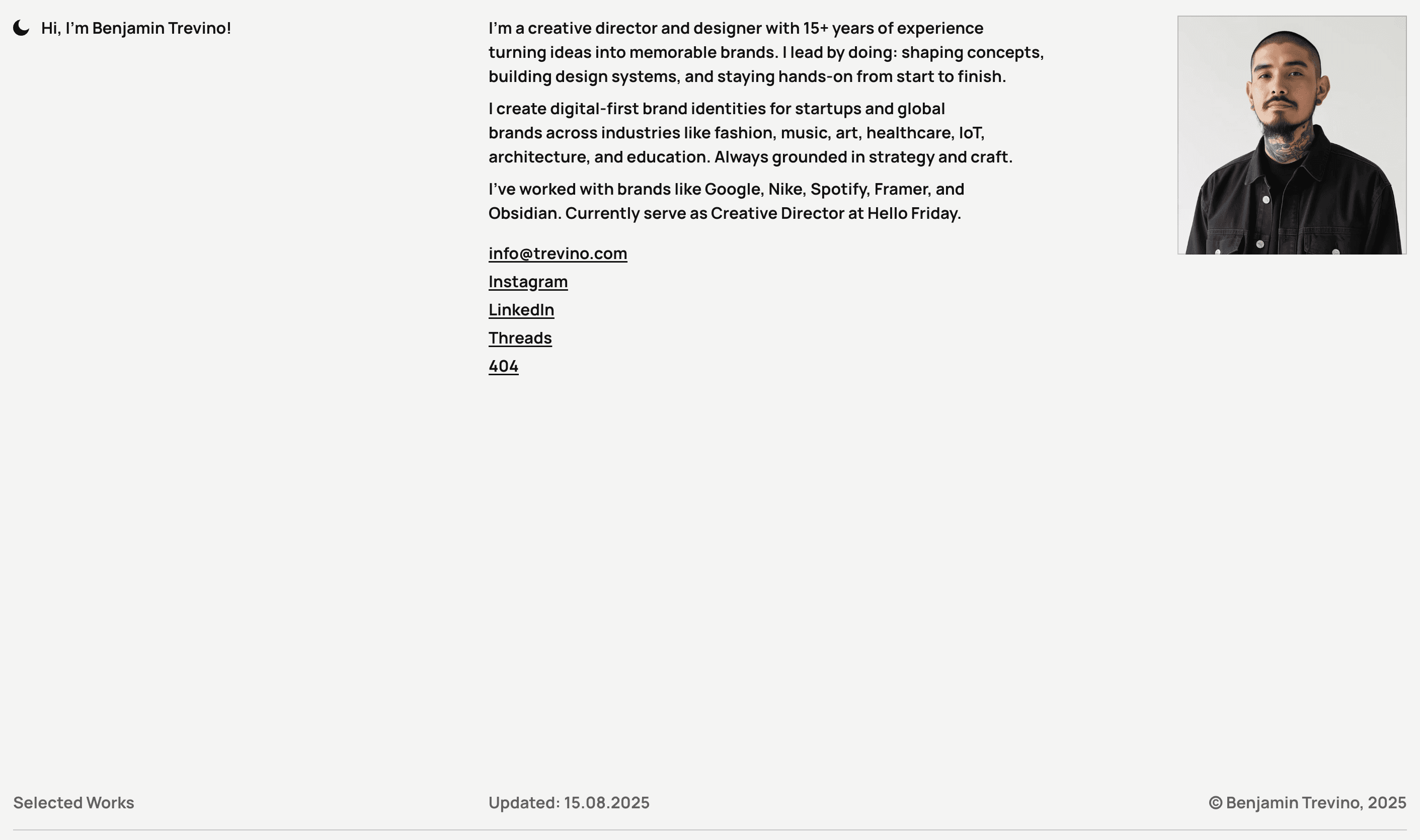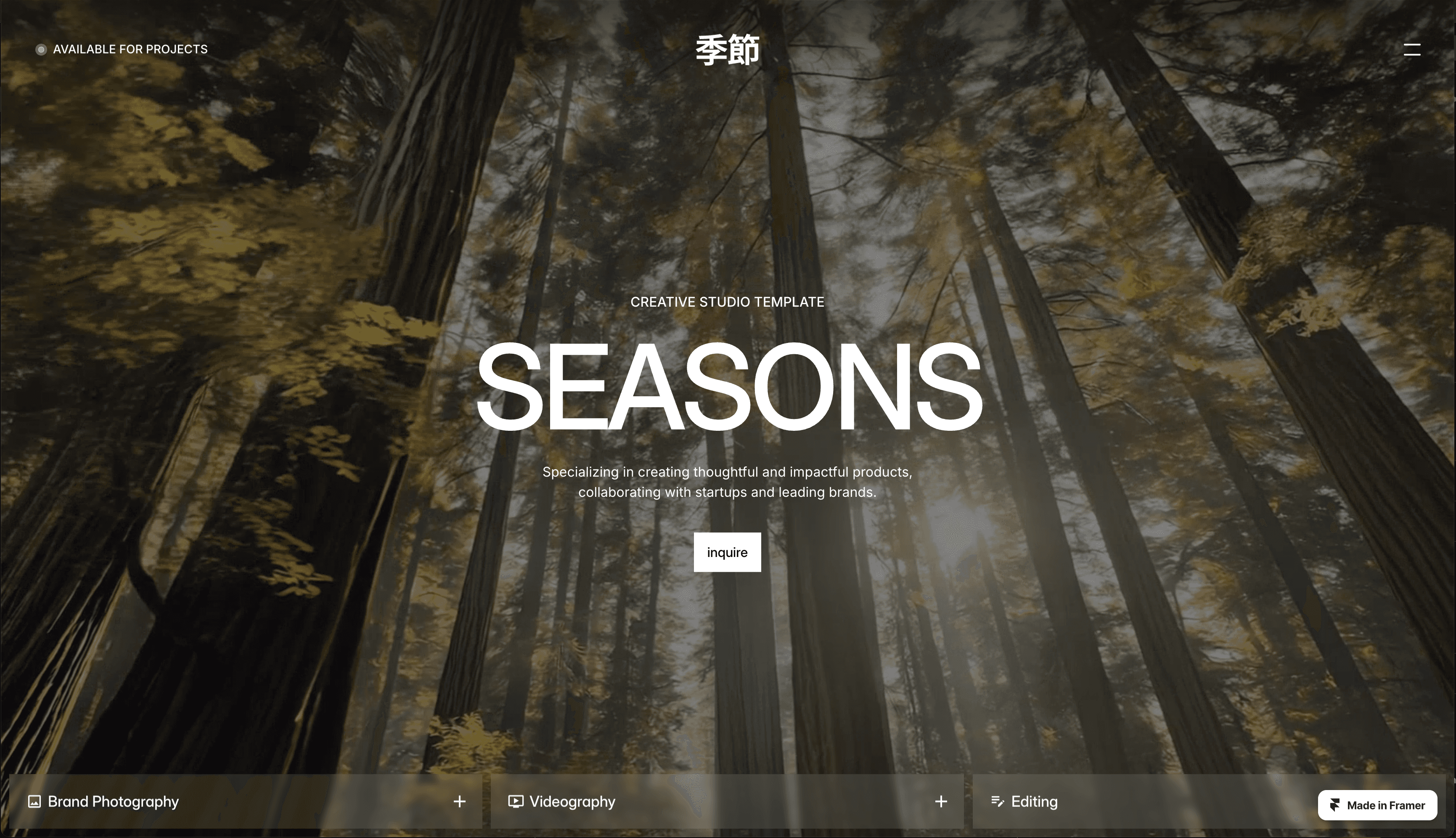 Indexy puts photography front and center, without any fluff. It’s a no-frills and focused full-screen, one-page template designed for straightforward artists to showcase their core work.