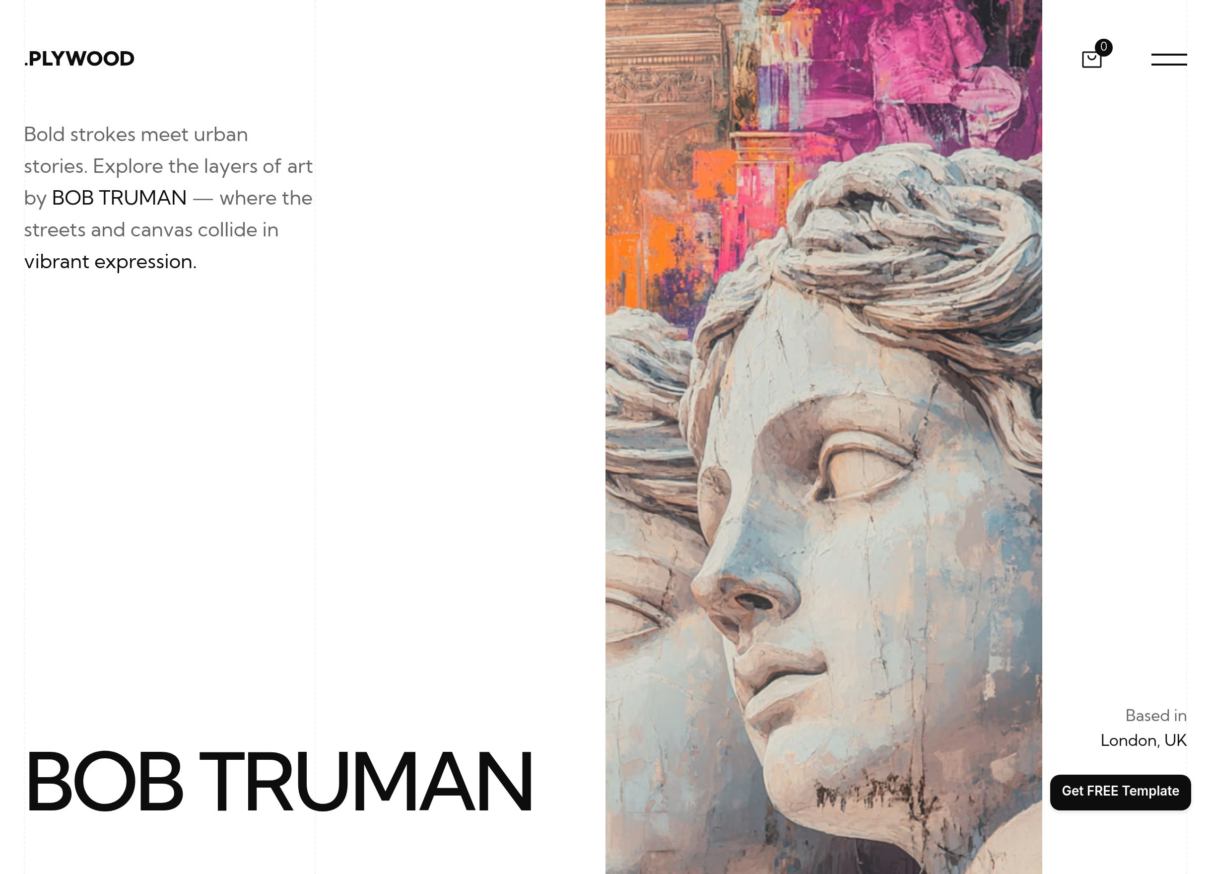 Plywood’s aesthetic is light and playful, great for both commercial digital artists as well as experimental designers. It uses tiled images, hover effects to reveal previews, and comes with several dynamic background variations. Perhaps most useful, Plywood also contains Frameship, a popular Shopify integration. That integration simplifies business functions like secure checkout and non-commissioned inventory management.