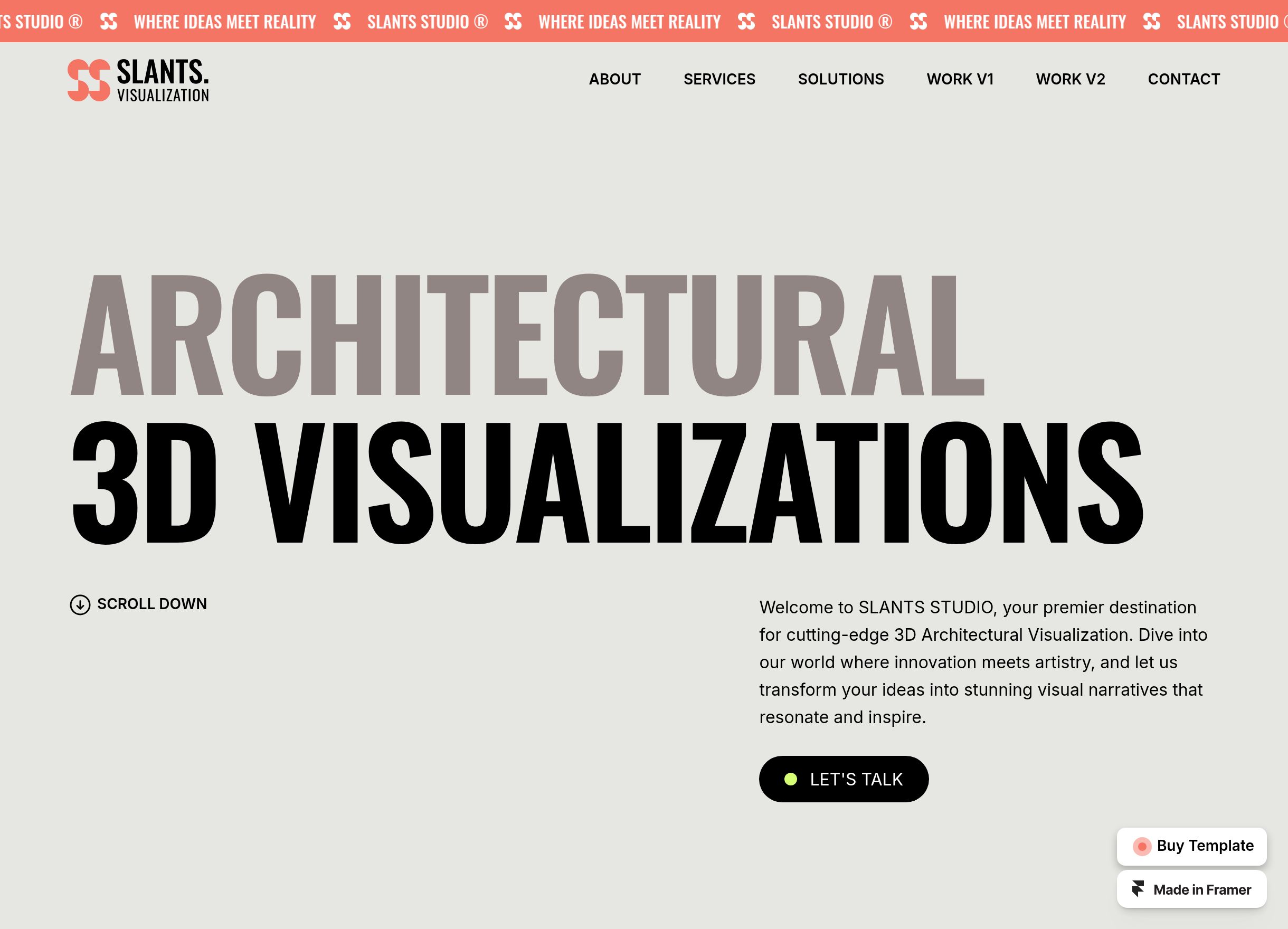 SLANTSUAL describes itself as “the visually striking portfolio template designed for 3D artists, architectural firms, and interior designers.” That tells you a lot about its main elements. Every page centers a portfolio piece, with sections to detail that piece’s story and process. Slantsual also contains tons of custom interactions, layered overlaps, dynamic animations, and customizable page visuals around shadow, texture, and image depth. It’s a strong, comprehensive website builder for any artist serious about the creative process as well as its output.