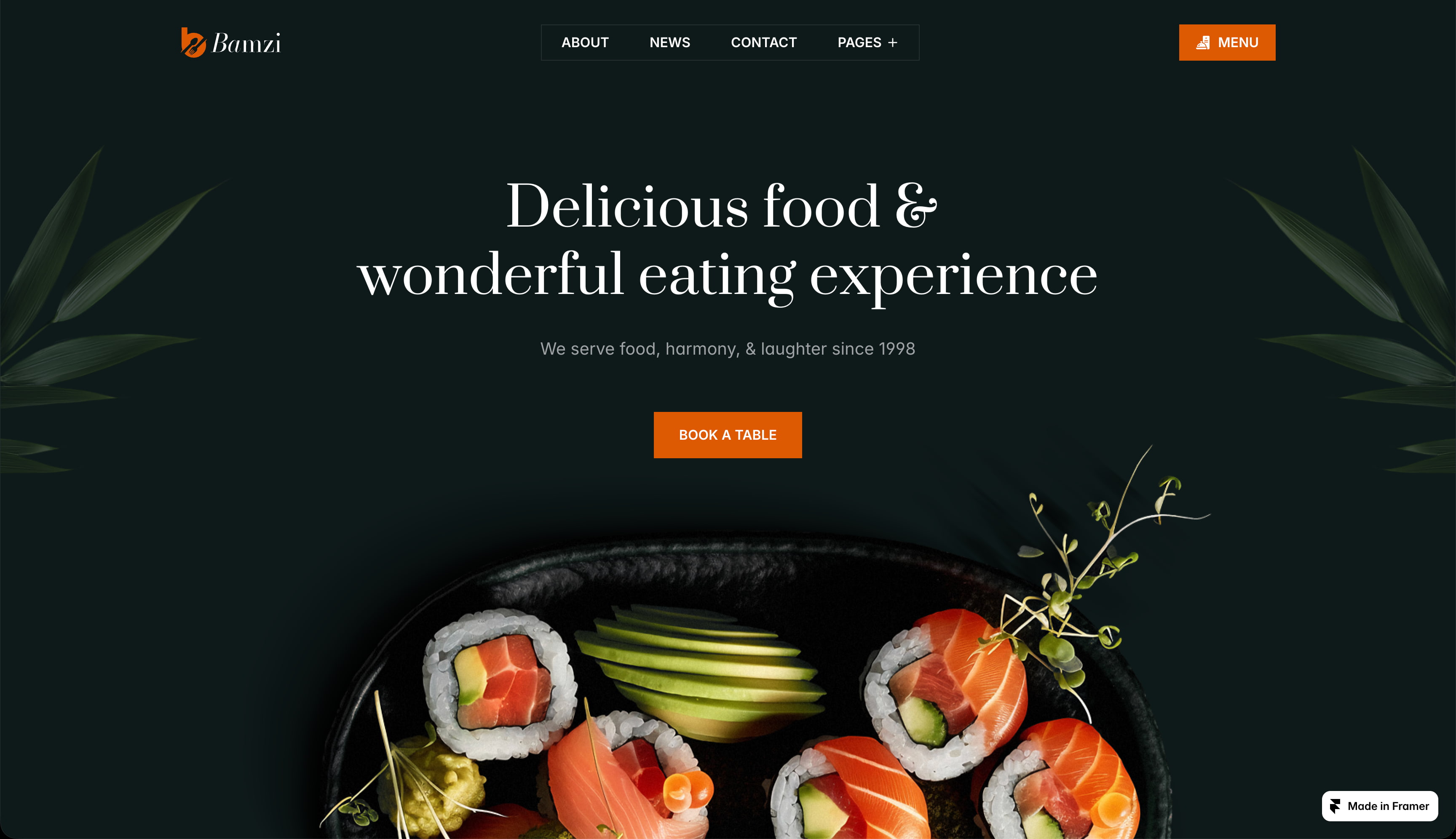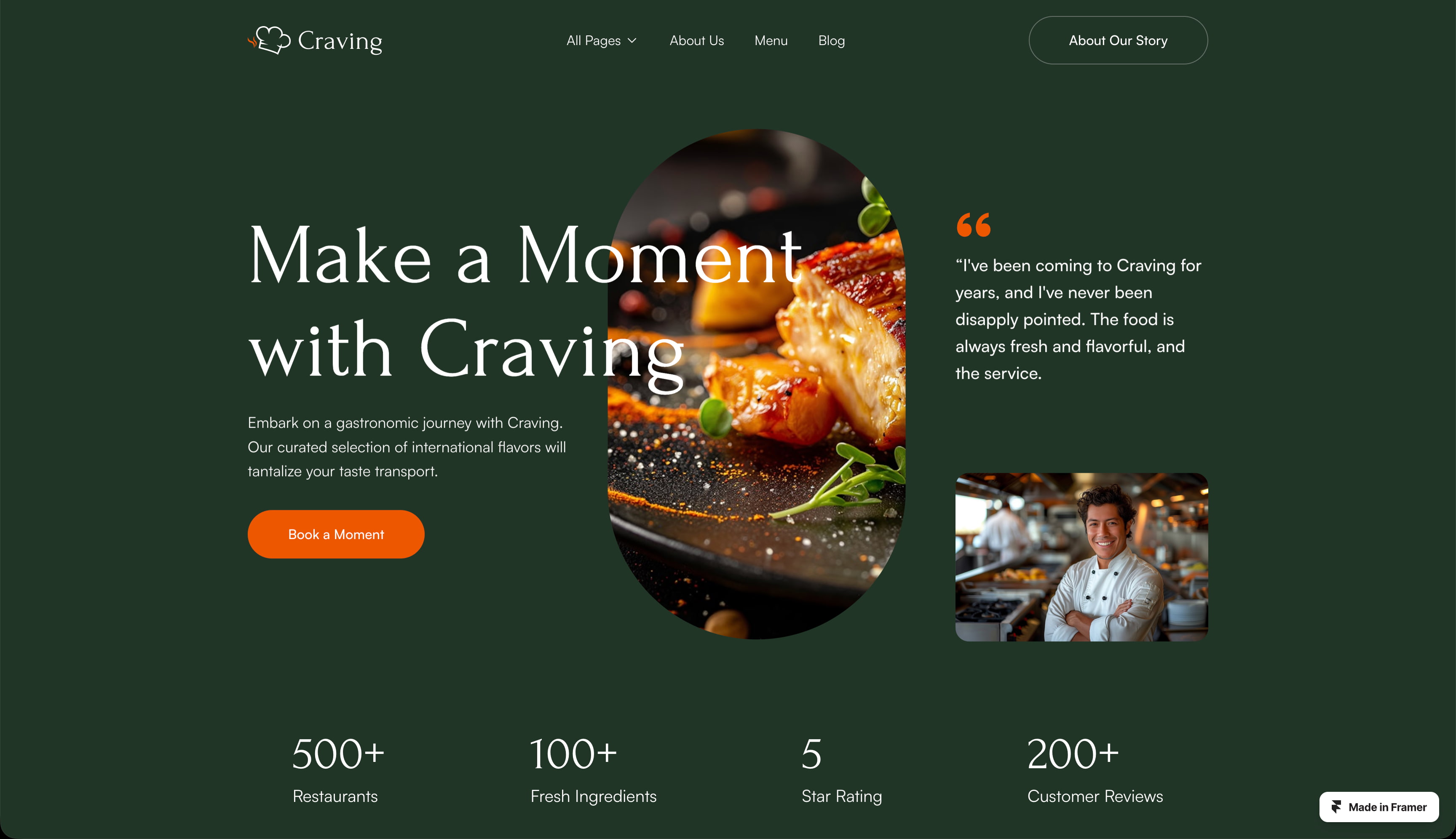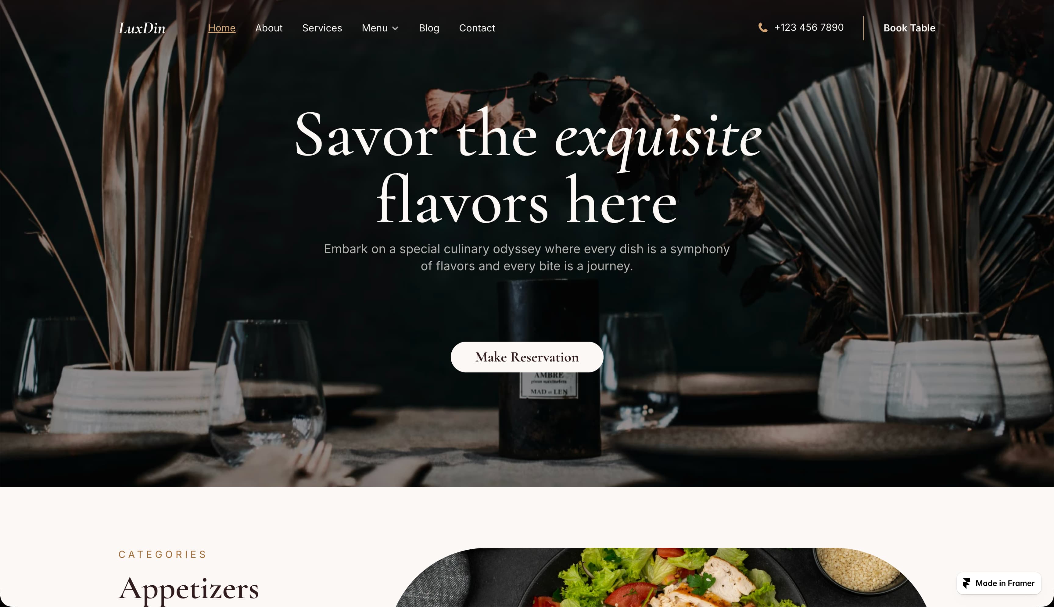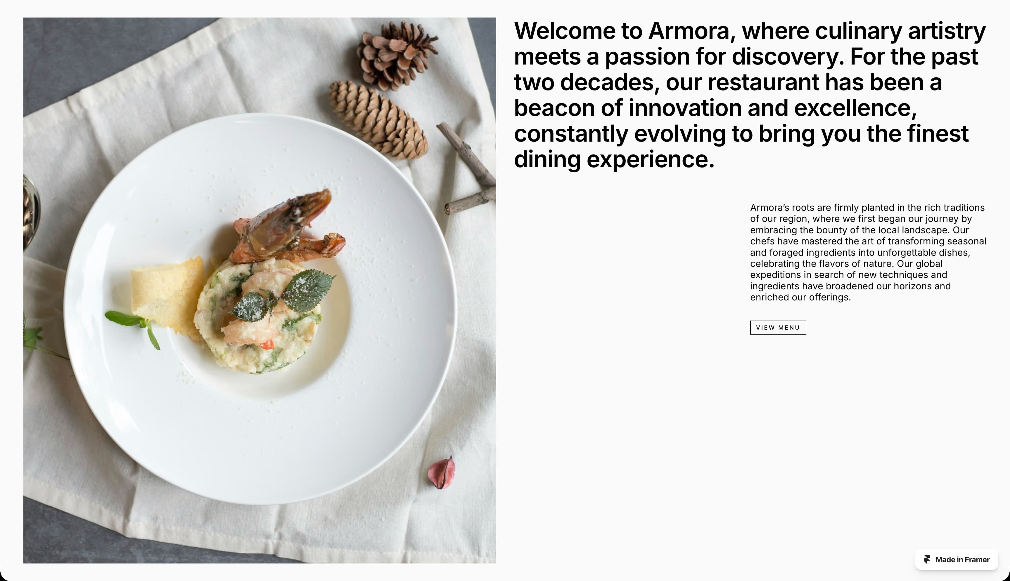 Check out these restaurant website templates, from the Framer Marketplace:
